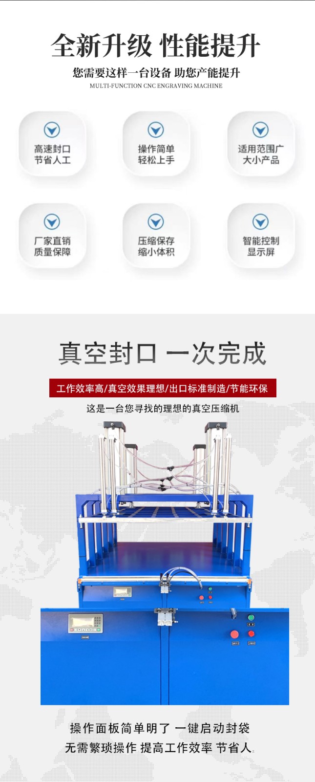 - 關(guān)機(jī):關(guān)閉真空壓縮封口機(jī)的電源開(kāi)關(guān),拔掉電源插頭。如果長(zhǎng)時(shí)間不使用機(jī)器,還可以用防塵罩將機(jī)器覆蓋,以保護(hù)機(jī)器免受灰塵污染。