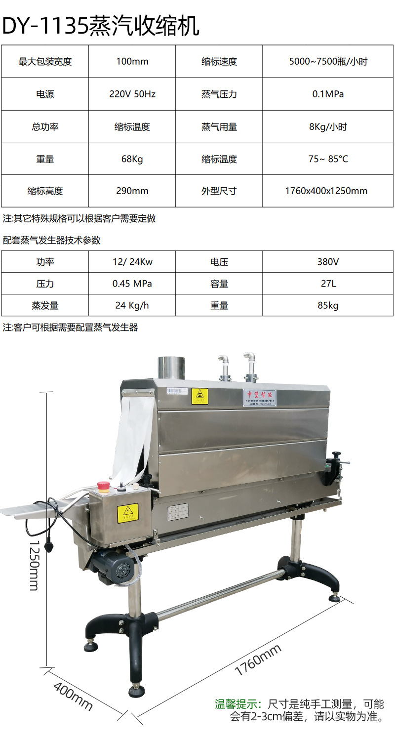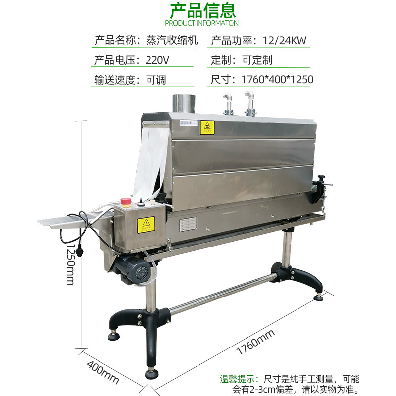 - 簡單的操作流程:蒸汽收縮機的操作相對簡單。一般通過控制面板就可以輕松設(shè)置蒸汽溫度、傳送帶速度、蒸汽噴射時間等關(guān)鍵參數(shù)。操作人員不需要經(jīng)過復(fù)雜的專業(yè)培訓(xùn)就能上手操作。例如,在小型食品加工企業(yè),普通工人在簡單學(xué)習(xí)后就能熟練操作蒸汽收縮機進行產(chǎn)品包裝。