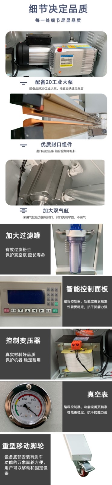 立式外抽真空包裝機抽氣不充分可能由設(shè)備本身部件、包裝材料及操作等多方面原因造成,以下是具體介紹: