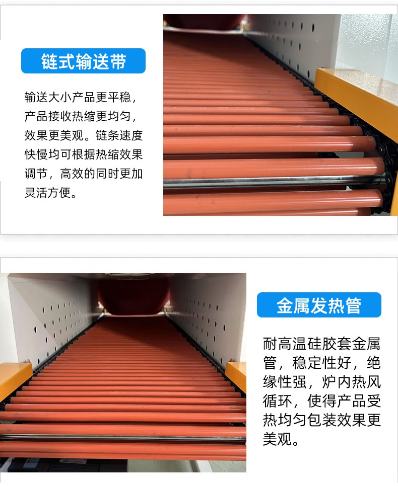 - 熱收縮效果:熱收縮機的收縮效果直接影響產(chǎn)品的包裝外觀。理想的熱收縮效果是使熱收縮膜緊密貼合產(chǎn)品表面,無褶皺、無破裂。這取決于熱收縮通道的溫度均勻性、風速調節(jié)以及輸送速度的配合等因素。