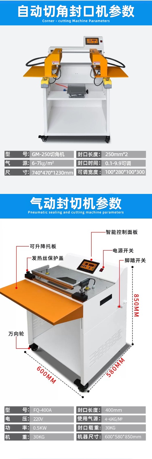 - 材料厚度:包裝材料的厚度也會影響設備的選型。較厚的材料需要更大的封口壓力和更高的熱封溫度,同時對切角刀具的要求也更高。因此,要根據(jù)材料厚度選擇具有相應功率和壓力調節(jié)范圍的設備。