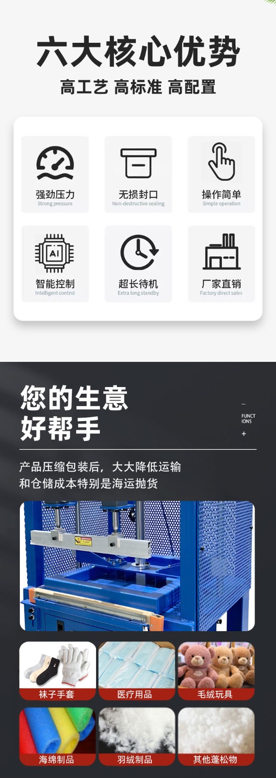 壓縮封口包裝機(jī)的封口效果會受到多種因素的影響,以下是一些主要因素: