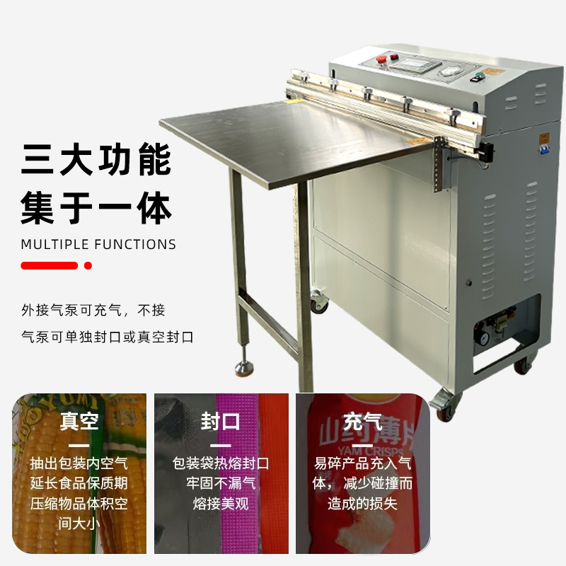 在立式外抽真空包裝機中,真空過濾裝置是保障設(shè)備穩(wěn)定運行、延長核心部件壽命、適配多品類包裝需求的 “防護關(guān)鍵”,其作用圍繞 “過濾雜質(zhì)、保護系統(tǒng)、優(yōu)化包裝效果” 三大核心展開,具體可拆解為以下 4 個維度: