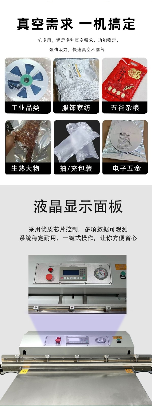 立式外抽真空包裝機的核心優(yōu)勢是 “通用性強”,但若無過濾裝置,其適用范圍會大幅受限 —— 僅能包裝干燥、無雜質(zhì)的產(chǎn)品(如紡織品、完整零件),無法處理粉塵、液體、帶碎屑的品類。