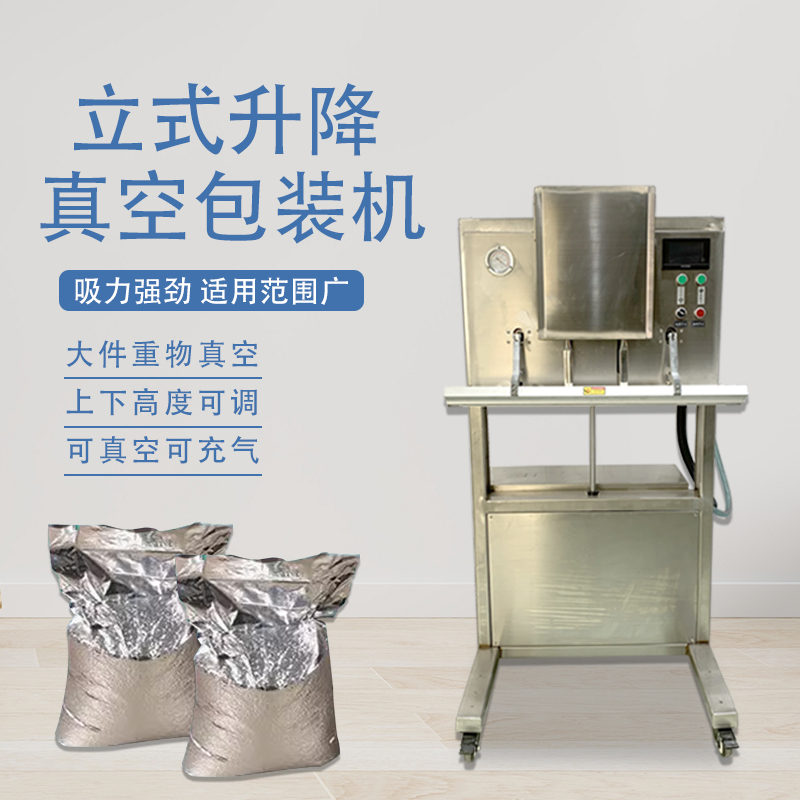 - 立式升降真空包裝機:真空室容積更大,承重能力更強(部分機型可承重 50kg 以上),能處理大袋顆粒(如飼料、塑膠粒)、大件五金件等普通機型無法容納的物品。