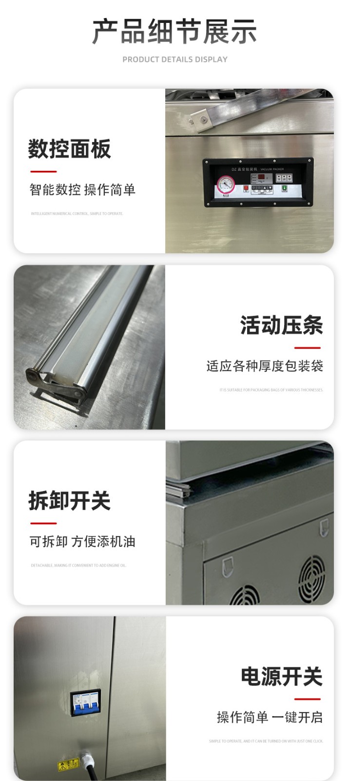 - 包裝袋規(guī)格:使用尺寸統(tǒng)一、材質(zhì)適配的包裝袋,能減少調(diào)整設(shè)備的時間。若包裝袋尺寸混亂,需頻繁微調(diào)真空室或封口位置,效率會明顯下降。