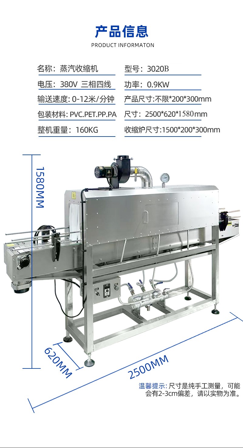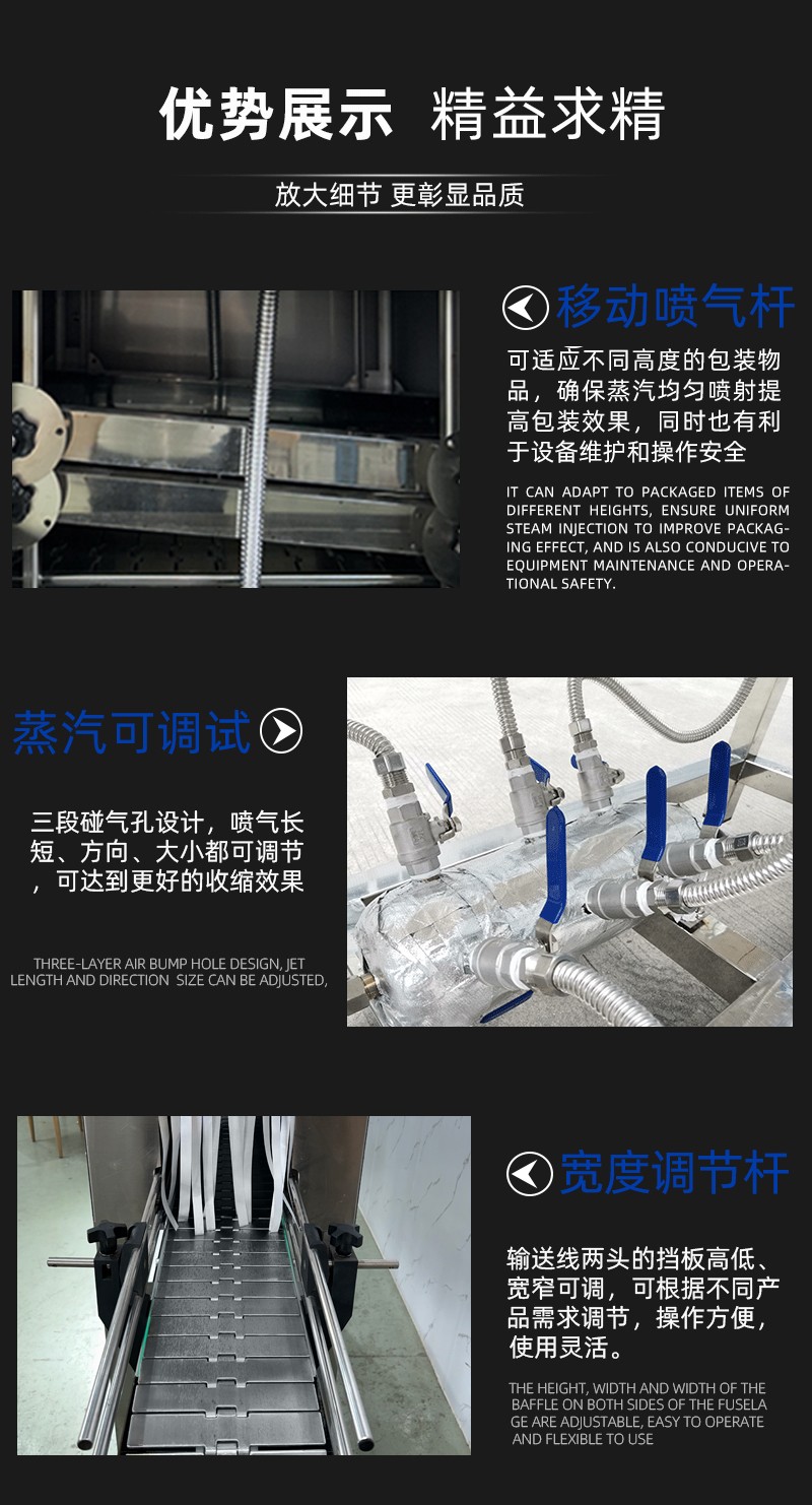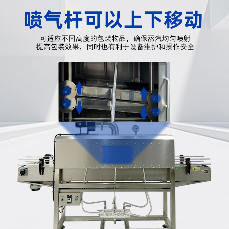 蒸汽收縮機的核心工作原理是利用蒸汽的均勻熱量,使熱收縮膜受熱后緊密包裹產(chǎn)品,最終完成密封定型的自動化包裝過程。