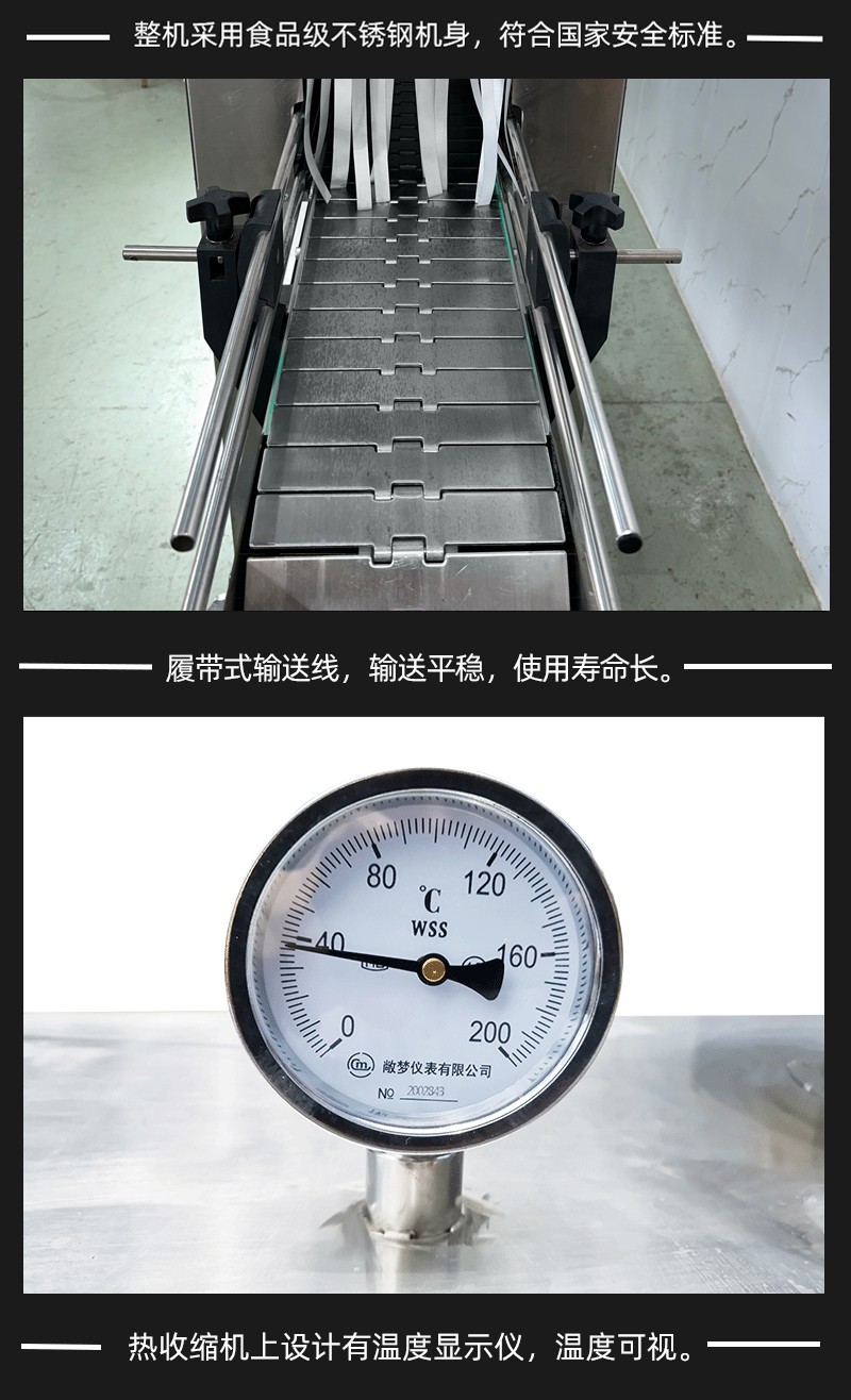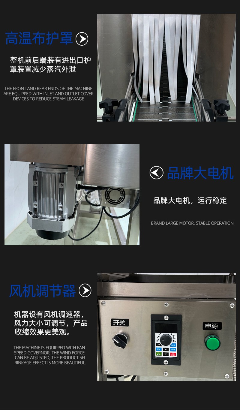 - 加熱效果優(yōu)越:利用蒸汽恒溫且溫度擴散均勻的特性工作,能達到普通電熱紅外加熱收縮機不可比擬的效果。設(shè)備采用加熱器加熱水產(chǎn)生蒸汽,無需另外配備蒸汽鍋爐。主機有主副 2 個加熱器,可根據(jù)生產(chǎn)速度調(diào)節(jié)功率大小,輸送帶采用無級調(diào)速,輸送速度可任意調(diào)節(jié)。