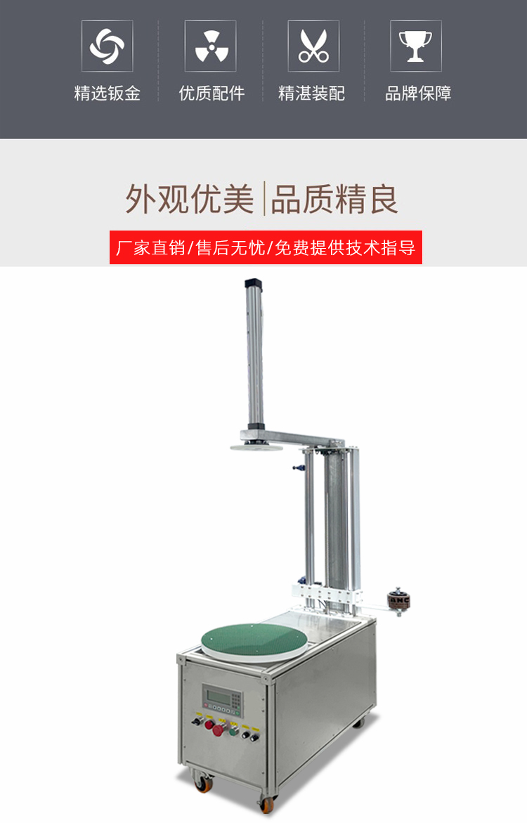 - 多功能兼顧:纏繞過程中薄膜拉伸率可控(通常 10%-30%),既保證包裝緊密不松動,又避免薄膜浪費;部分機型支持頂部 / 底部加強纏繞、預拉伸功能,進一步提升包裝穩(wěn)定性,同時降低耗材成本。