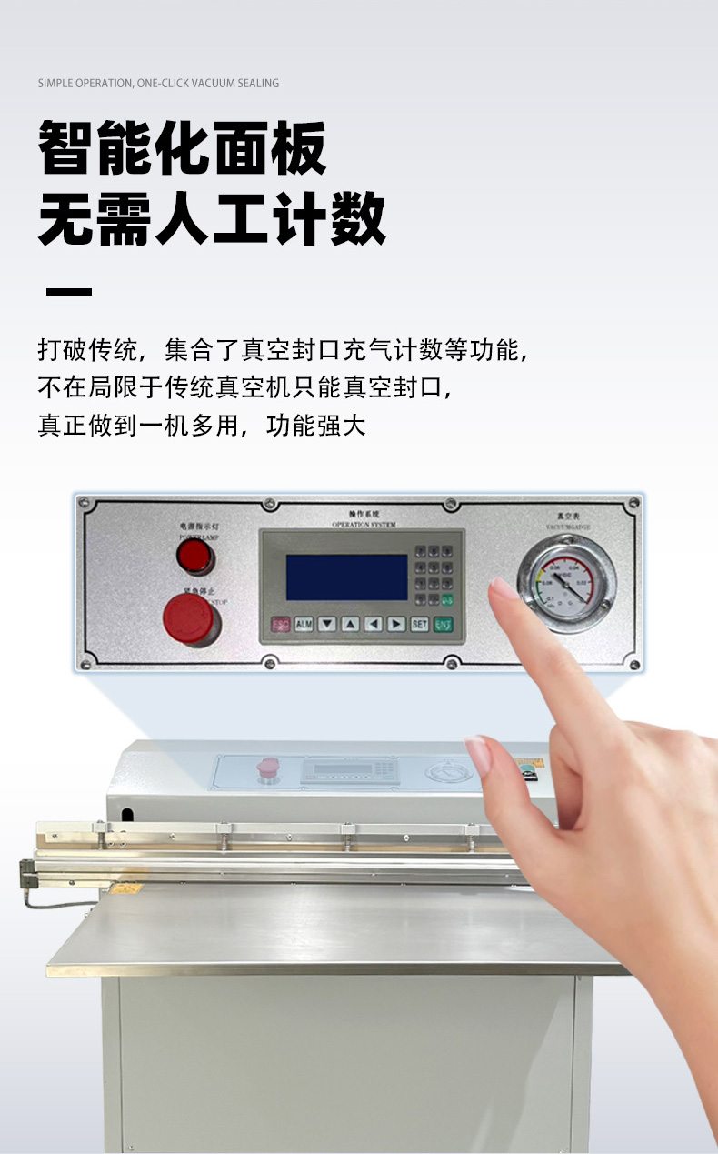 - 外抽真空包裝機(jī)的熱封條通常位于抽氣嘴下方或封口機(jī)構(gòu)處,外部有金屬防護(hù)蓋(防止誤觸高溫)。