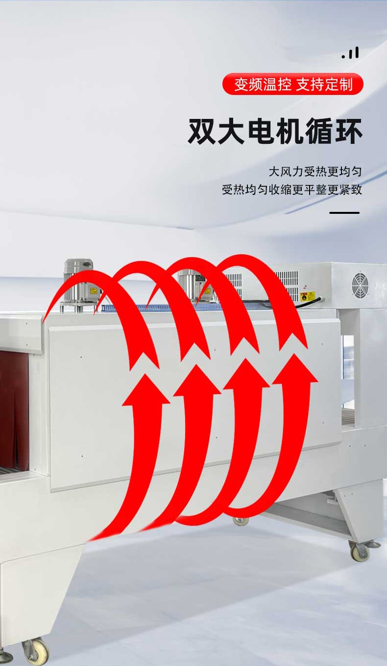 冷卻與輸出:收縮后的包裝經(jīng)冷卻系統(tǒng)快速定型后自動輸送至成品區(qū)。