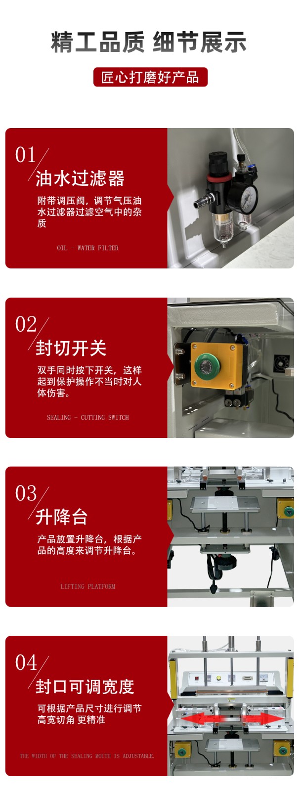 - 設(shè)備選型:不同的食品藥品包裝對(duì)封口效果有不同的要求,如果設(shè)備選型不當(dāng),可能無法滿足特定的包裝標(biāo)準(zhǔn)。例如,對(duì)于一些高阻隔性包裝材料或特殊形狀的包裝,需要選擇具有相應(yīng)功能和性能的封口切角一體機(jī)。因此,在選購設(shè)備時(shí),企業(yè)應(yīng)根據(jù)自身產(chǎn)品的包裝特點(diǎn)和相關(guān)標(biāo)準(zhǔn),選擇合適的機(jī)型,并咨詢?cè)O(shè)備供應(yīng)商的專業(yè)意見。