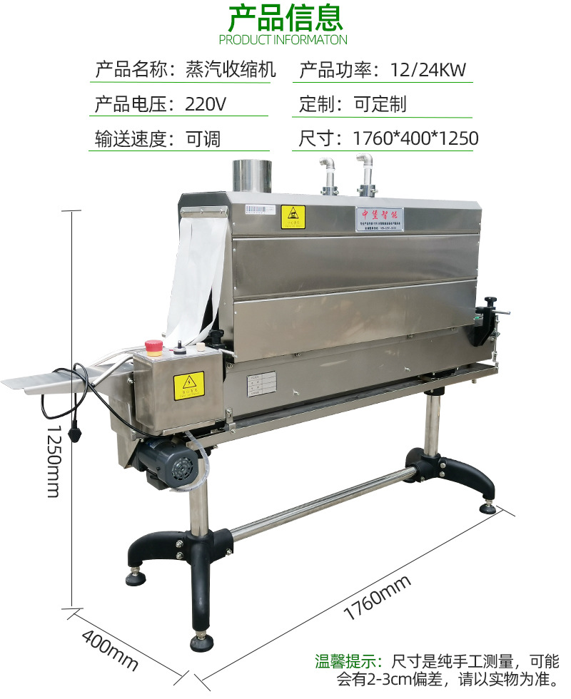 - 能夠精確控制收縮程度。通過調(diào)節(jié)蒸汽的溫度、壓力和產(chǎn)品在收縮通道中的輸送速度,可以根據(jù)不同的包裝薄膜材料和產(chǎn)品要求,實現(xiàn)不同程度的收縮,滿足多樣化的包裝需求。