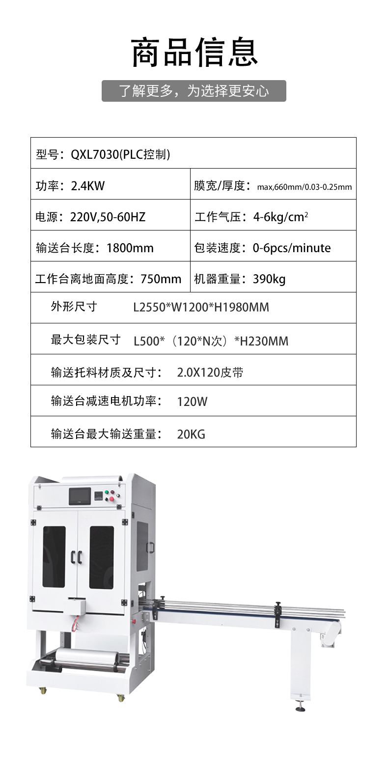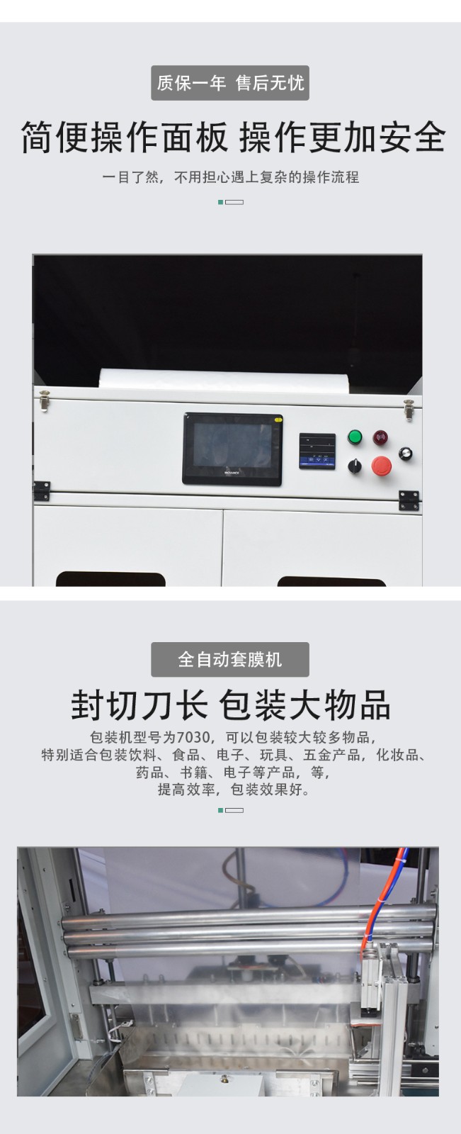 - 高速套膜:具有較高的套膜速度,每分鐘可以完成多件產(chǎn)品的套膜,極大地提高了包裝作業(yè)的速度。相比傳統(tǒng)的手工套膜或半自動套膜設(shè)備,其效率提升顯著,能夠滿足大規(guī)模生產(chǎn)的需求。
