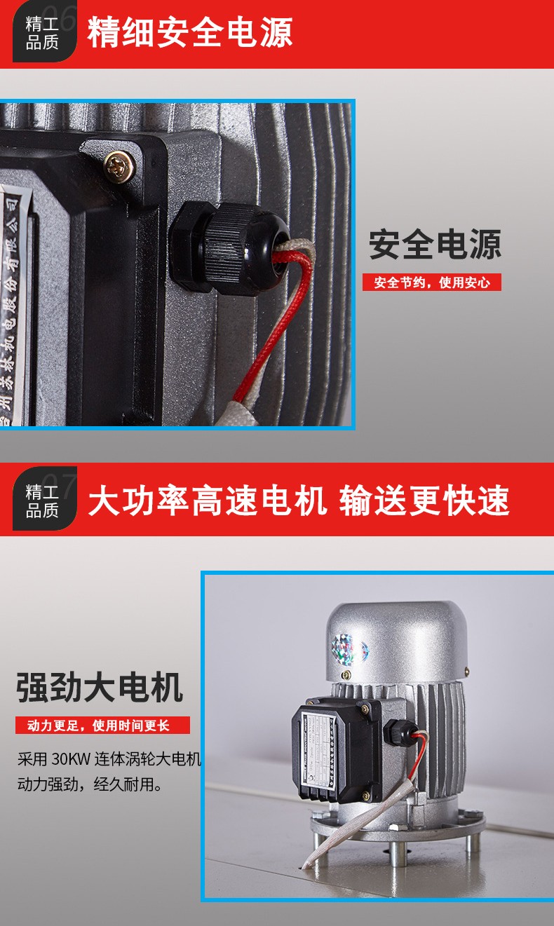- 噴氣系統(tǒng):通過風(fēng)機(jī)和噴氣嘴將熱空氣均勻地噴射到 PE 薄膜上。風(fēng)機(jī)提供強(qiáng)大的氣流動力,噴氣嘴的設(shè)計則保證熱空氣能夠全方位地覆蓋薄膜,使薄膜受熱均勻。噴氣嘴的形狀和數(shù)量會根據(jù)機(jī)器的規(guī)格和用途有所不同,有些機(jī)器的噴氣嘴是環(huán)形分布的,以確保產(chǎn)品各個方向都能受到熱空氣的作用。