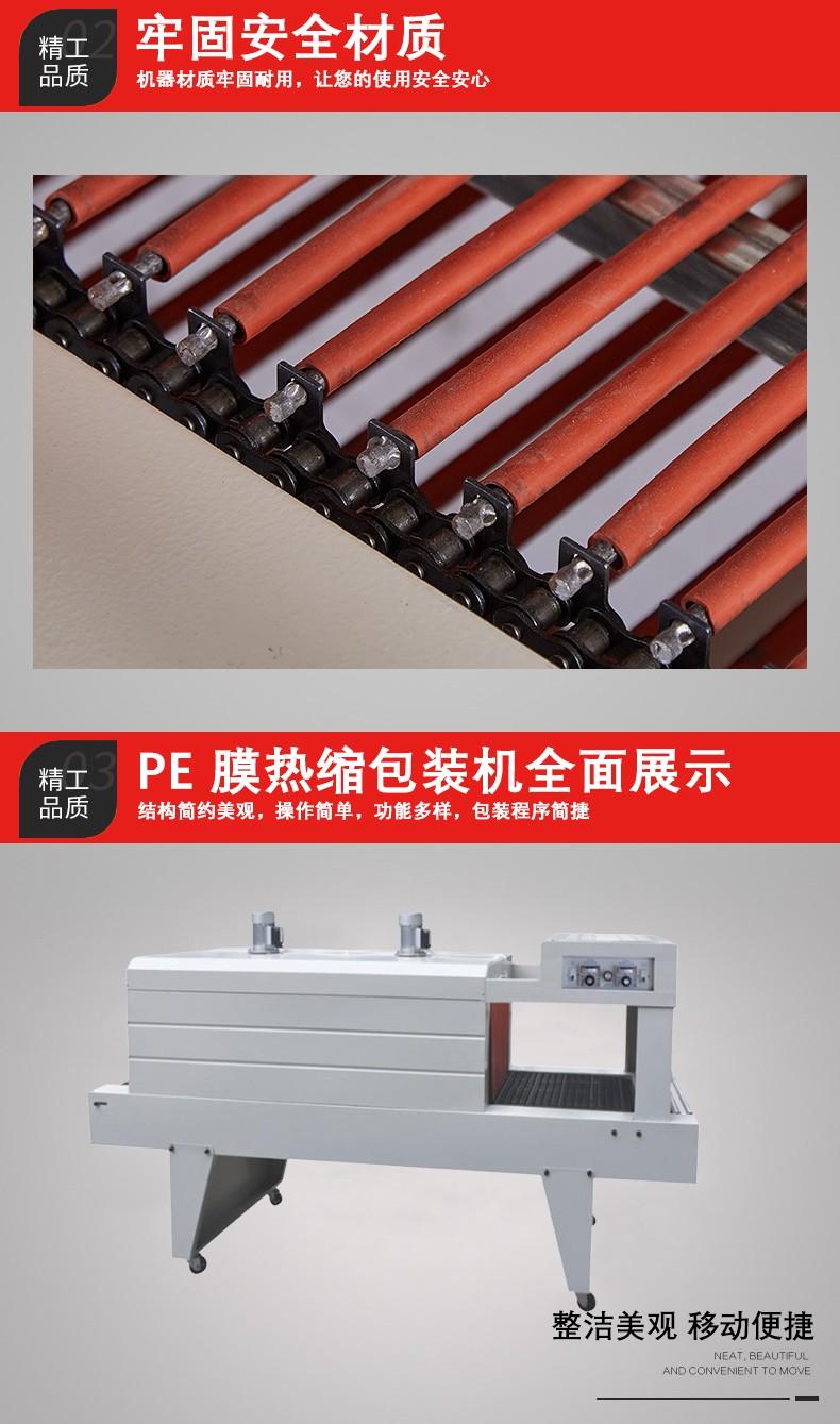 - 例如,當(dāng)把一個產(chǎn)品用 PE 薄膜包裹好,放入 PE 熱收縮機中,機器啟動后,薄膜在熱的作用下,就像被賦予了 “生命力” 一樣,逐漸收縮,最后緊貼在產(chǎn)品的輪廓上,就像給產(chǎn)品穿上了一層定制的保護 “外衣”。