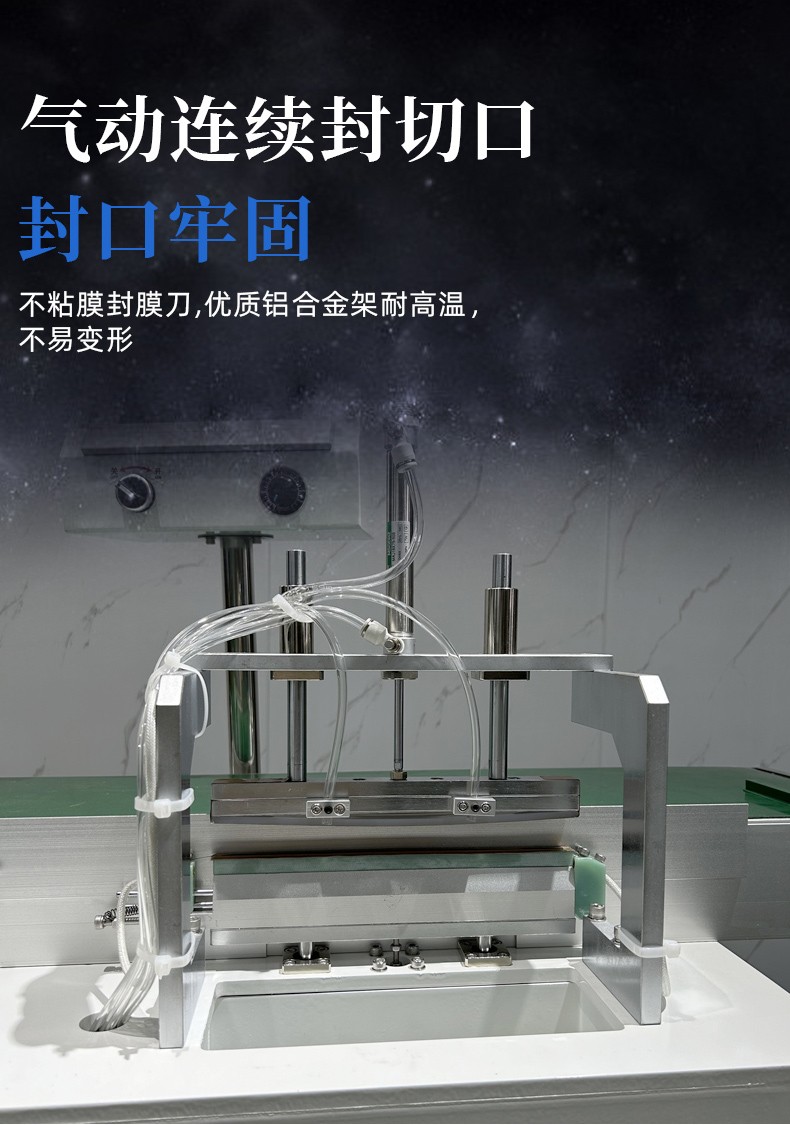 - 高速連續(xù)作業(yè):采用氣動驅(qū)動和連續(xù)輸送的方式,能夠?qū)崿F(xiàn)快速的封切操作,并且可以連續(xù)不斷地對物品進行包裝,生產(chǎn)效率高,適用于大批量產(chǎn)品的包裝生產(chǎn)線。