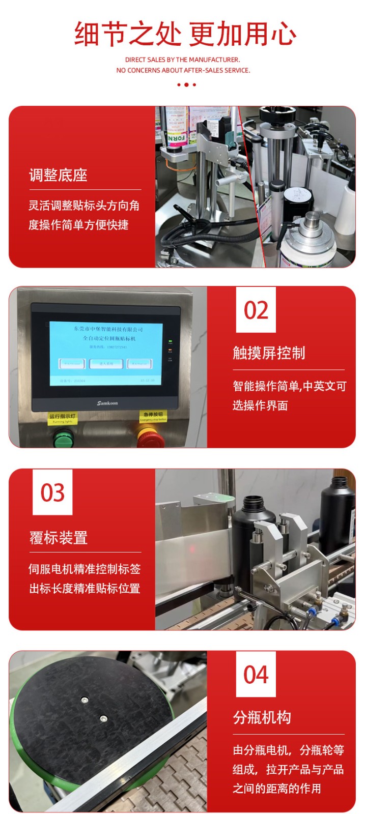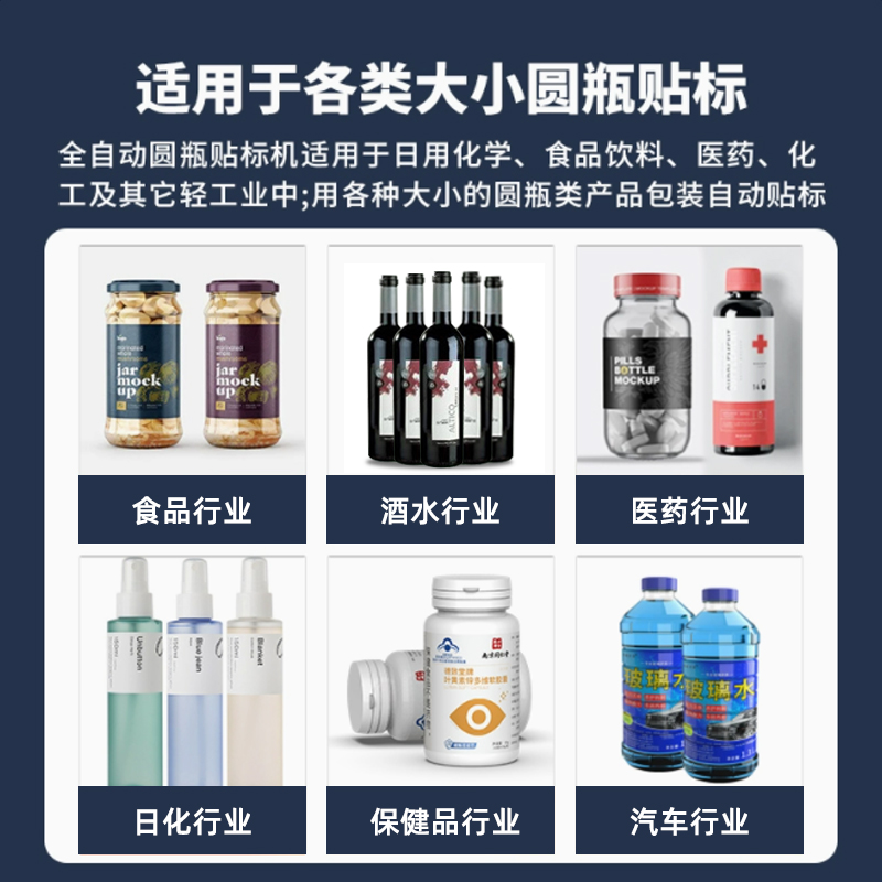 - 貼標(biāo):當(dāng)圓瓶到達(dá)貼標(biāo)位置時,貼標(biāo)機構(gòu)的標(biāo)簽牽引裝置根據(jù)預(yù)設(shè)的標(biāo)簽長度,將標(biāo)簽從標(biāo)簽卷上牽引出來,貼標(biāo)頭在控制系統(tǒng)的指令下,將標(biāo)簽準(zhǔn)確地貼附在圓瓶表面。同時,壓標(biāo)裝置對標(biāo)簽進行壓實,使其牢固地粘貼在瓶身上。