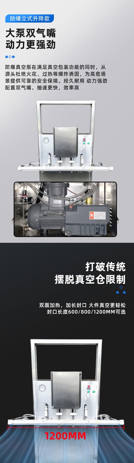 - 防爆性能優(yōu)越:采用物理隔離防爆技術(shù),嚴格選用防爆達標元件,電器箱、真空泵、熱封條等都經(jīng)過特殊的防爆處理,能有效防止在操作過程中產(chǎn)生火花,避免爆炸等危險情況的發(fā)生2。