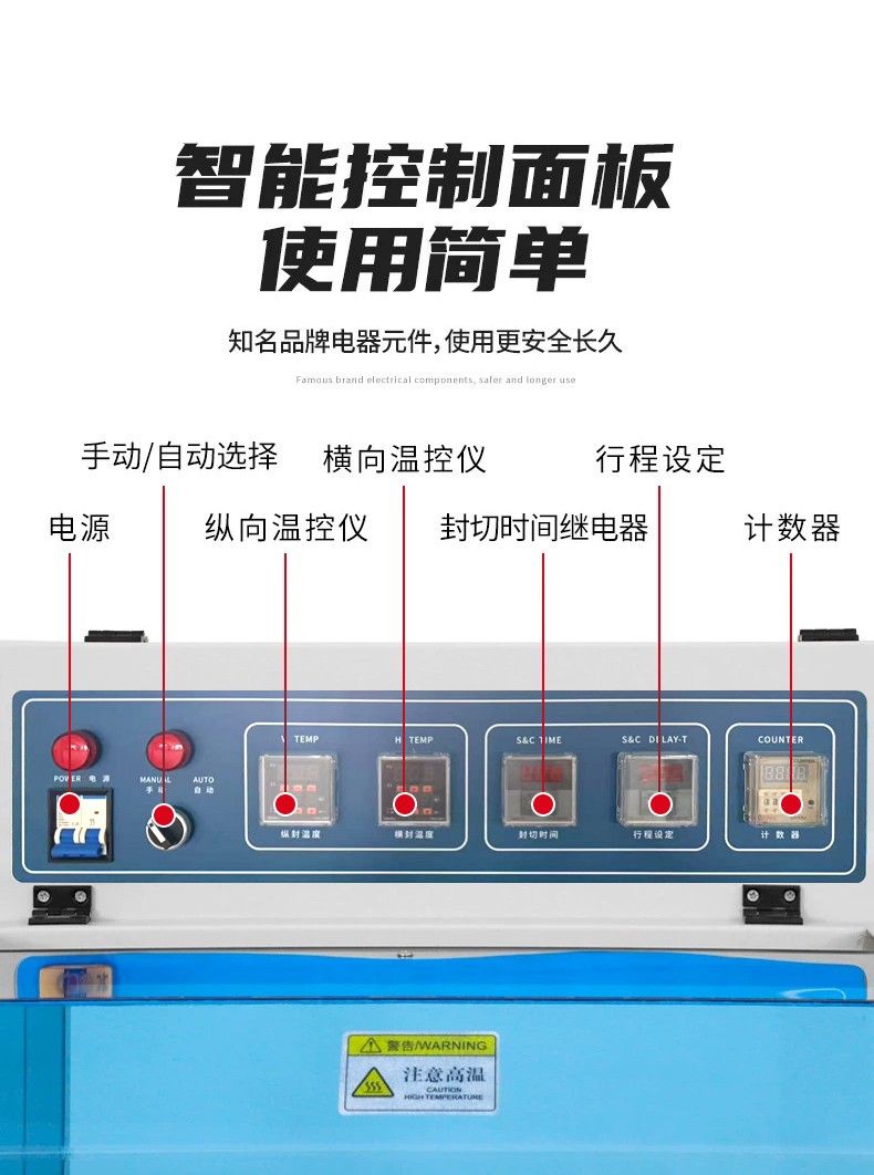 - 核心部件(如封切刀、輸送帶)均為模塊化設(shè)計,拆卸更換方便,日常維護(hù)僅需清理廢膜、檢查加熱管即可。