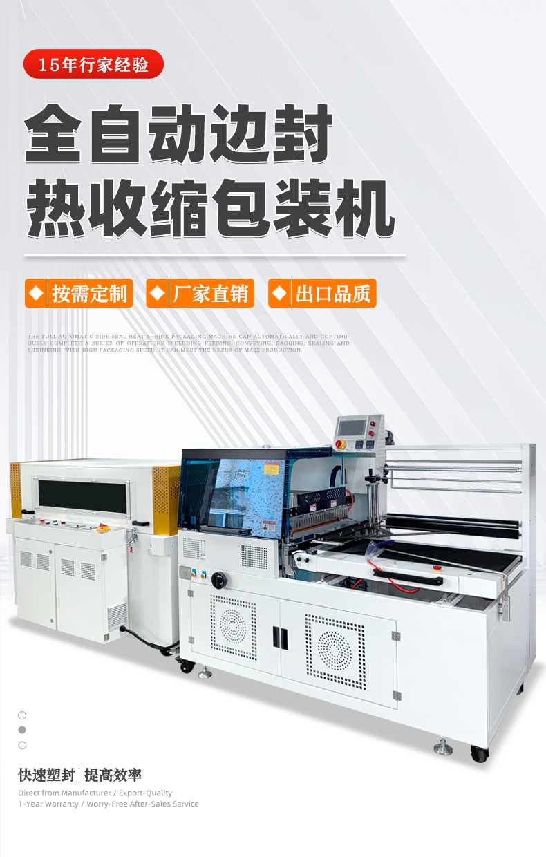 利用薄膜輸送系統(tǒng)將包裝薄膜圍繞產(chǎn)品,然后通過邊封裝置對薄膜的側(cè)邊進(jìn)行密封,形成一個包裹產(chǎn)品的袋子。之后,產(chǎn)品被輸送到熱收縮通道,熱空氣使薄膜收縮并緊緊貼合在產(chǎn)品表面,完成包裝。