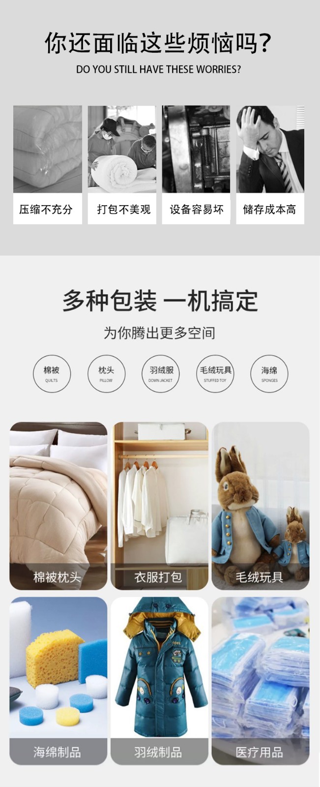 真空壓縮封口機(jī):集成抽真空功能,先抽走包裝內(nèi)空氣(如食品袋、零件袋),再加壓封口,適合需要防潮、保鮮、防氧化的場(chǎng)景(如肉類真空包裝、精密零件防銹包裝)。