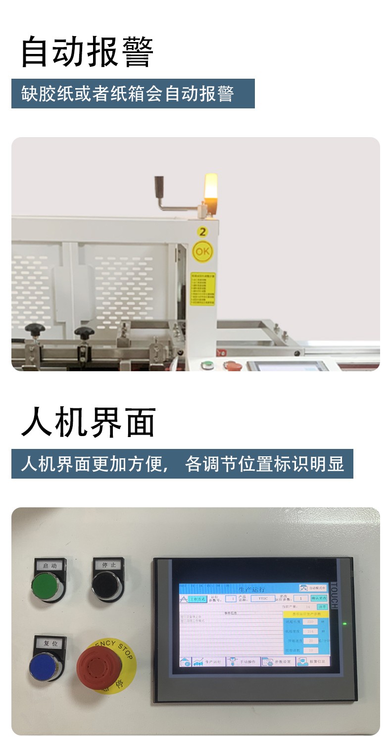 - 熱熔膠封底方式:對于采用熱熔膠封底的機器,會有熱熔膠槍。熱熔膠在膠槍中被加熱熔化后,通過膠槍的噴嘴均勻地涂抹在紙箱底部的折頁上。當折頁被折疊起來時,熱熔膠在冷卻過程中會將折頁牢固地粘合在一起。熱熔膠的用量和溫度可以根據(jù)紙箱的材質(zhì)和尺寸進行調(diào)節(jié),以保證封底的質(zhì)量。
